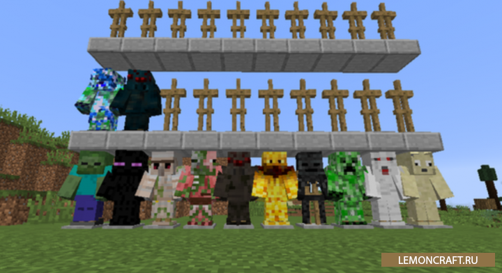 Мод на броню мобов Mob Armor добавит в игру 16 видов новой брони, каждая из которых будет представлять определенного моба. Облачившись в данную броню вы получите некоторые способности моба, прикольный внешний вид и особые характеристики.